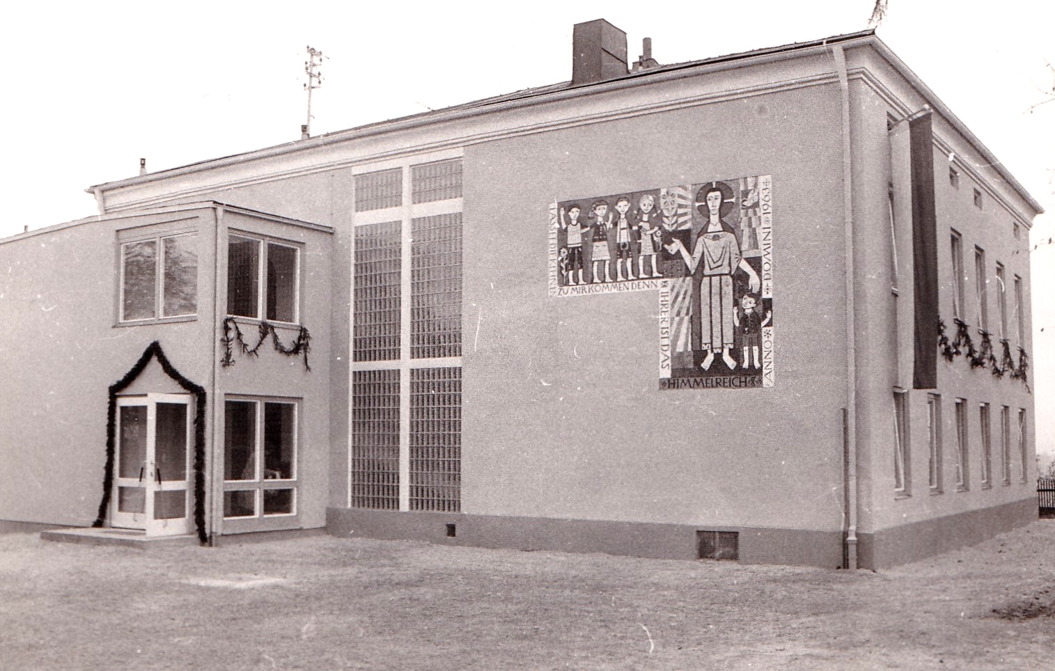 Auf dem Foto von 1955 sieht man die Klassen 3 bis 5, also die Jahrgänge 1947 und älter.